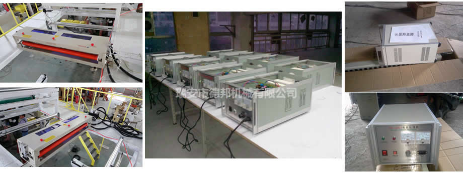 (1)通過放電使兩極之間的空氣電離,在薄膜表面形成等離子區(qū)使薄膜表面同非極性變成極性表面,達(dá)到 改性。另外空氣在高壓電場(chǎng)中電離,產(chǎn)生臭氧,臭氧是一種強(qiáng)氧化劑,可以立即氧化塑料薄膜的表面分子,使其由非極性轉(zhuǎn)化為極性。表面張力得到提高(經(jīng)測(cè)定可達(dá)到38-55達(dá)因);